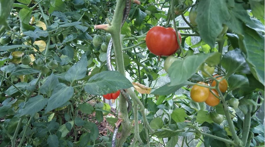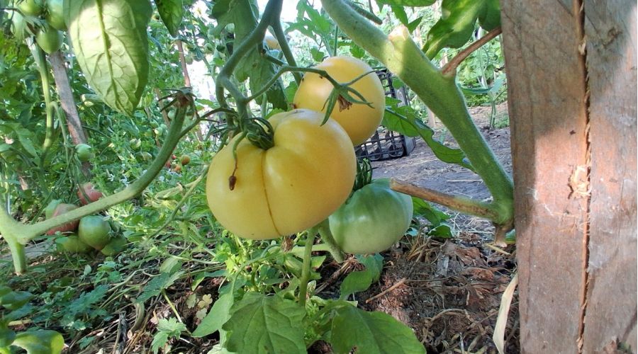 Deze zelf gezaaide Cœur de Bœuf is een heerlijke, sappige tomaat met een opvallende geribde vorm en intense smaak.