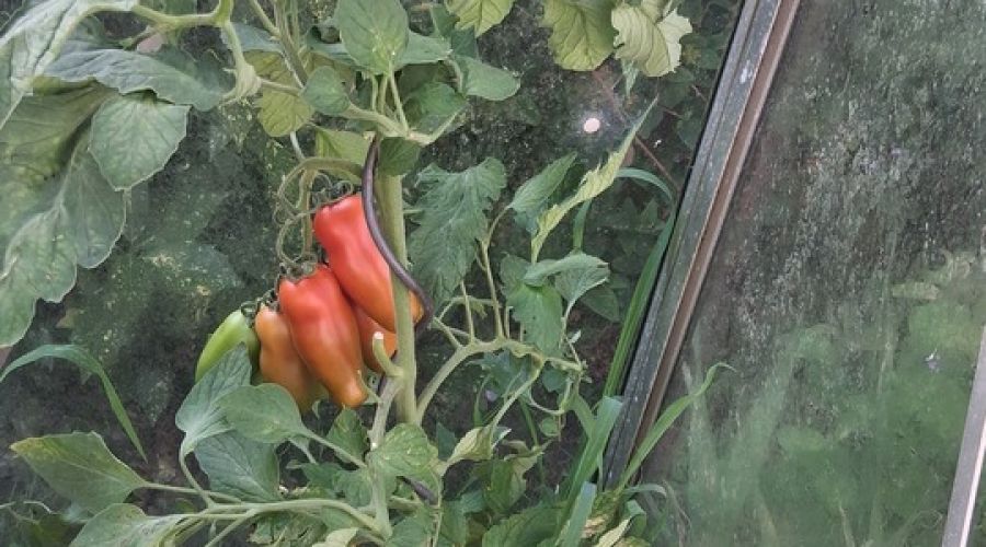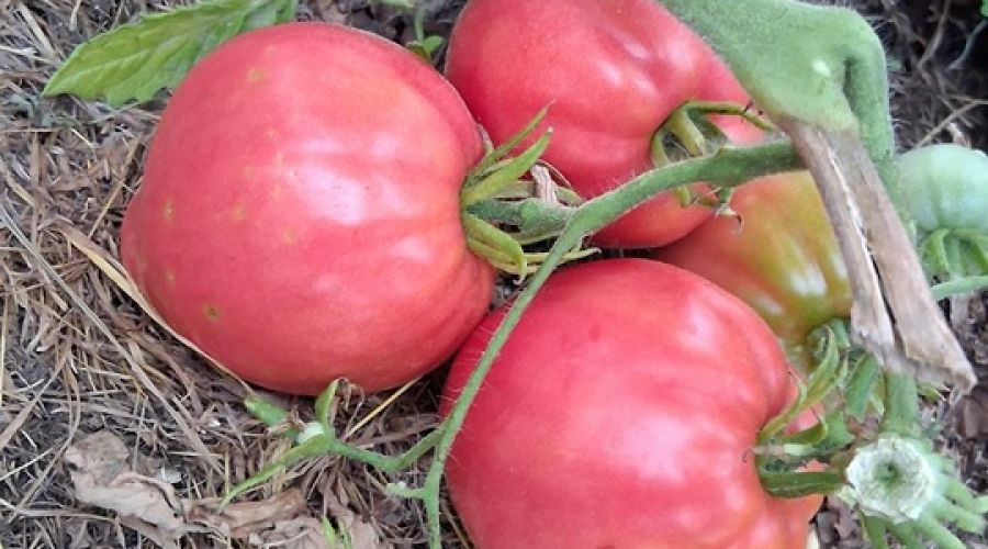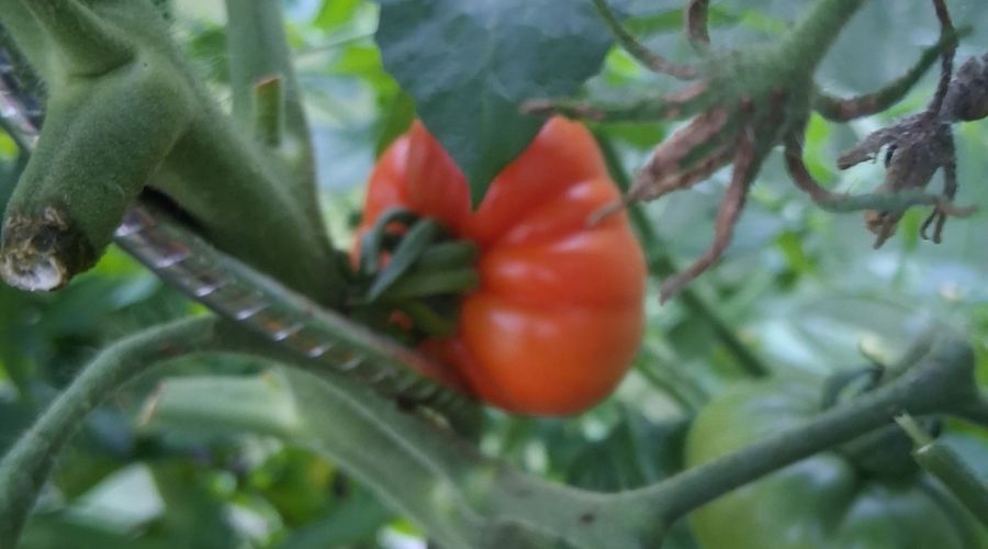 Deze zelf gezaaide Cœur de Bœuf is een heerlijke, sappige tomaat met een opvallende geribde vorm en intense smaak.